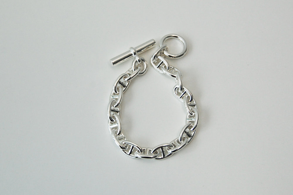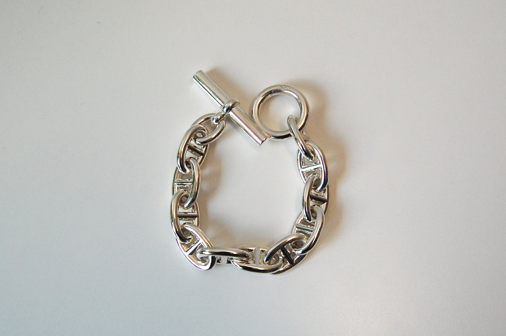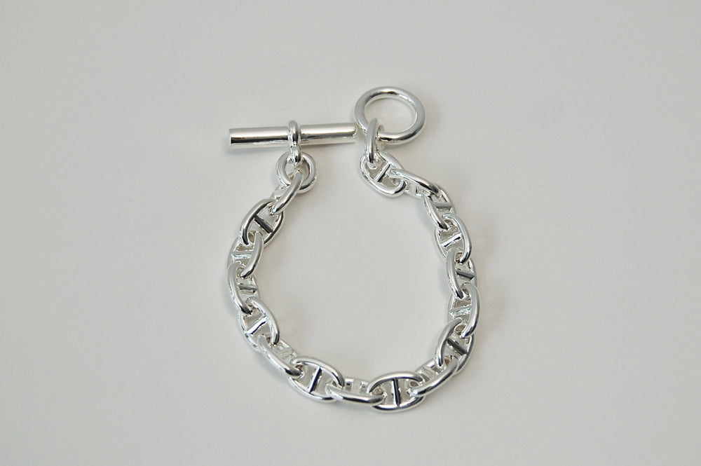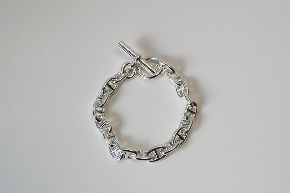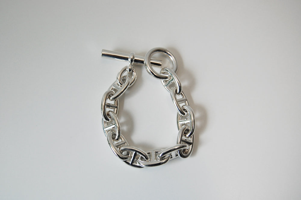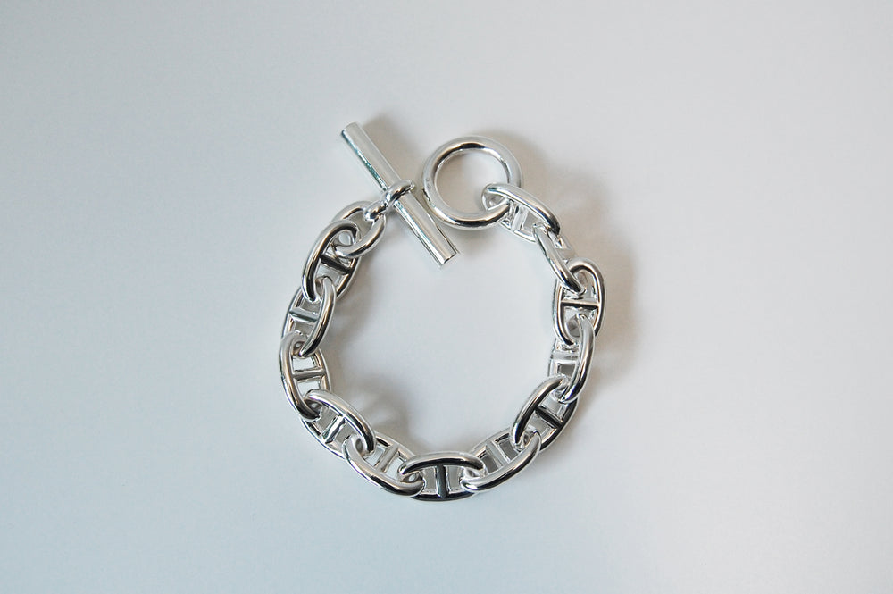 ノルマンディー海岸の船を留めていた錨の鎖をモチーフにしたアクセサリーは、各地で品切れになるほどの人気を誇る、シェーヌダンクルと呼ばれています。シンプルなデザインのため様々な方が多様なファッションに活用できるとっておきのアイテムです。サイズ展開はPPM,PM,MM,GM,TGMの5種類で、お客様の腕に合わせたものをお選びいただけます。