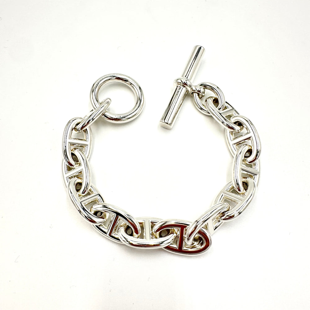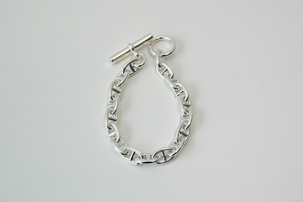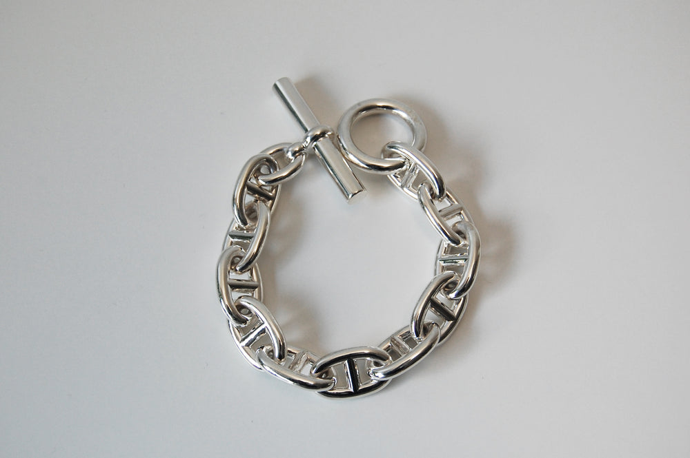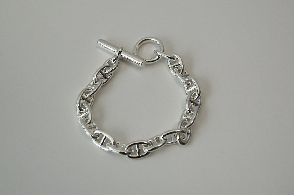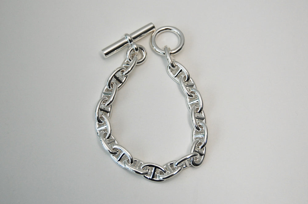 ノルマンディー海岸の船を留めていた錨の鎖をモチーフにしたアクセサリーは、各地で品切れになるほどの人気を誇る、シェーヌダンクルと呼ばれています。シンプルなデザインのため様々な方が多様なファッションに活用できるとっておきのアイテムです。サイズ展開はPPM,PM,MM,GM,TGMの5種類で、お客様の腕に合わせたものをお選びいただけます。